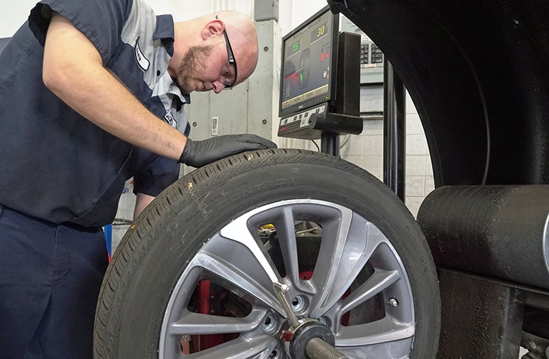 your tires rotated first before an alignment service is performed, which