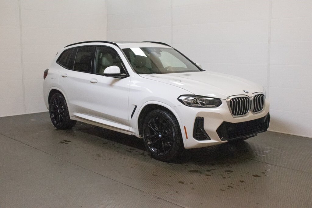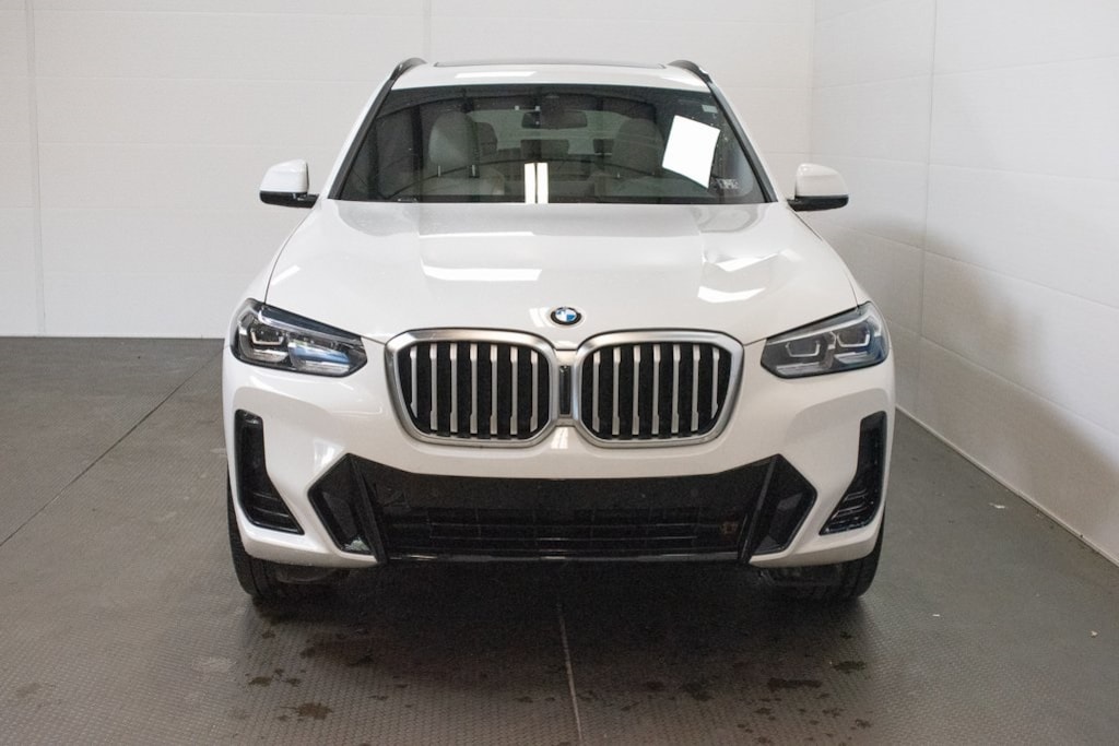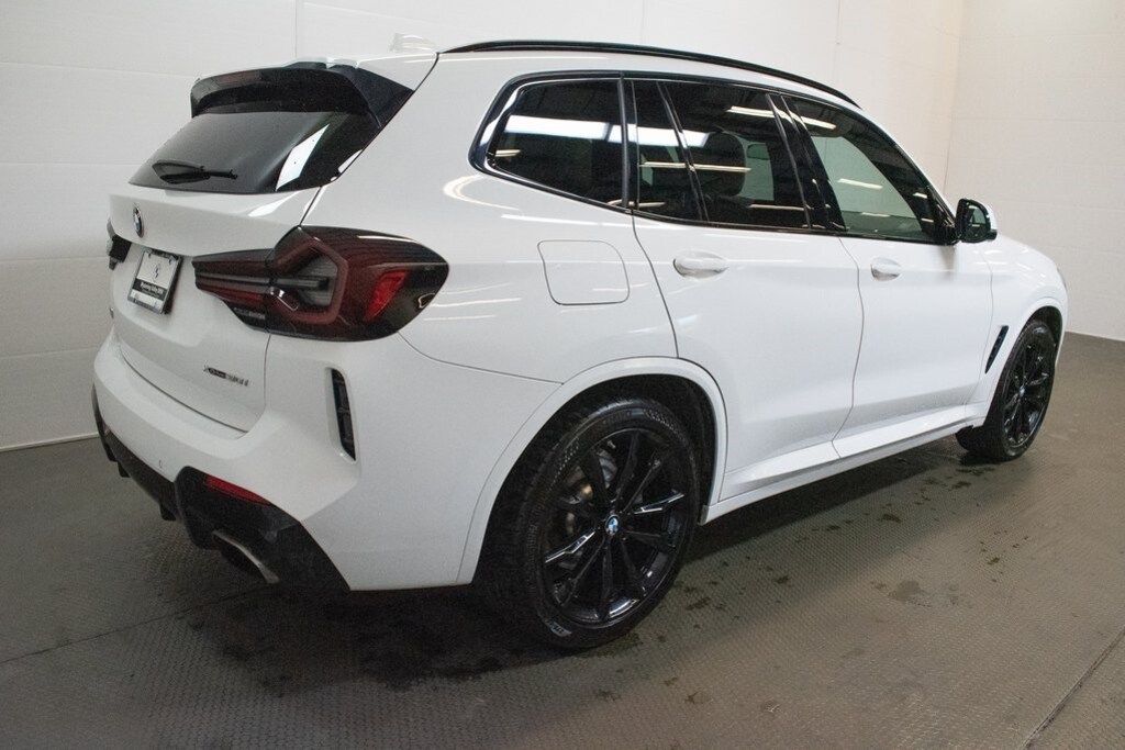This X3 is well equipped with Connected Package Pro, M Sport Package (337), M Sport Package 2 (Aerodynamic Kit, M Steering Wheel, Roof Rails in High-Gloss Shadowline, Shadowline Exterior Trim, Smoke Grey Aluminum Rhombicle Trim, Wheels: 20" x 8.0" Fr & 20" x 9.5" Rr (Style 787M), and Without Exterior Lines Designation), Premium Package 2 (Gesture Control, Heated Front Seats, Heated Steering Wheel, Lumbar Support, and Panoramic Moonroof), Navigation, Navigation System, 12 Speakers, 3.385 Axle Ratio, 4-Wheel Disc Brakes, ABS brakes, Adjustable Seat Width, Air Conditioning, Alloy wheels, Aluminum Interior Trim, AM/FM Radio, AM/FM radio: SiriusXM with 360L, Apple CarPlay & Android Auto Compatibility, Auto High-beam Headlights, Auto-dimming door mirrors, Auto-dimming Rear-View mirror, Automatic temperature control, BMW Assist eCall, BMW TeleServices, Brake assist, Bumpers: body-color, Comfort Access Keyless Entry, ConnectedDrive Services, Delay-off headlights, Driver door bin, Driver vanity mirror, Dual front impact airbags, Dual front side impact airbags, Electronic Stability Control, Emergency communication system: BMW Assist eCall, Enhanced Bluetooth, Exterior Parking Camera Rear, Four wheel independent suspension, Front & Rear Heated Seats, Front anti-roll bar, Front Bucket Seats, Front Center Armrest, Front dual zone A/C, Front reading lights, Fully automatic headlights, Garage door transmitter, Genuine wood dashboard insert, Genuine wood door panel insert, Heated door mirrors, Hi-Fi Sound System, Illuminated entry, Knee airbag, Live Cockpit Pro w/Navigation, Low tire pressure warning, Memory seat, Occupant sensing airbag, Outside temperature display, Overhead airbag, Panic alarm, Passenger door bin, Passenger vanity mirror, Perforated SensaTec Upholstery, Power door mirrors, Power driver seat, Power Front Seats, Power Liftgate, Power passenger seat, Power steering, Power windows, Radio data system, Rain sensing wipers, Rear air conditioning, Rear anti-roll bar, Rear reading lights, Rear seat center armrest, Rear window defroster, Rear window wiper, Remote keyless entry, Roof rack: rails only, Security system, SiriusXM w/360L, Speed control, Speed-sensing steering, Speed-Sensitive Wipers, Split folding rear seat, Spoiler, Sport Seats, Sport steering wheel, Steering wheel mounted audio controls, Tachometer, Telescoping steering wheel, Tilt steering wheel, Traction control, Trip computer, Turn signal indicator mirrors, Variably intermittent wipers, Wheels: 19" x 7.5" Y-Spoke (Style 693), Wheels: 20" x 8.0" Fr & 20" x 9.5" Rr M Dbl Spoke, and WiFi Hotspot.