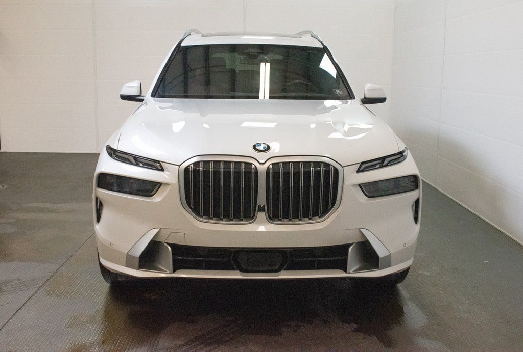 This X7 is well equipped with Climate Comfort Package (5-Zone Automatic Climate Control, Front & Rear Heated Seats, and Front Ventilated Seats), Connected Package Pro, Executive Package (DISC) (Front Massaging Seats, Gesture Control, Glass Controls, harman/kardon Surround Sound System, Heated & Cooled Cup Holders, Panoramic Sky Lounge LED Roof, Rear Electric Side Window Shades, and Soft-Close Automatic Doors), Parking Assistance Package (Drive Recorder, Parking Assistant Professional, and Surround View w/3D View), Navigation system: BMW Maps Navigation, 10 Speakers, 3.64 Axle Ratio, 3rd row seats: split-bench, 4-Wheel Disc Brakes, ABS brakes, Adaptive suspension, Air Conditioning, Alloy wheels, AM/FM radio: SiriusXM, AM/FM Stereo, Anthracite Alcantara Headliner, Apple CarPlay & Android Auto Compatibility, Apple CarPlay Compatibility, Auto High-beam Headlights, Auto tilt-away steering wheel, Auto-dimming door mirrors, Auto-dimming Rear-View mirror, Auto-leveling suspension, Automatic temperature control, BMW Assist eCall, BMW TeleServices, Brake assist, Bumpers: body-color, Compass, ConnectedDrive Services, Delay-off headlights, Driver door bin, Driver vanity mirror, Dual front impact airbags, Dual front side impact airbags, Electronic Stability Control, Emergency communication system: BMW Assist eCall, Exterior Parking Camera Rear, Four wheel independent suspension, Front anti-roll bar, Front Bucket Seats, Front Center Armrest, Front dual zone A/C, Front reading lights, Fully automatic headlights, Garage door transmitter, Genuine wood console insert, Genuine wood dashboard insert, Genuine wood door panel insert, Head restraints memory, Heads-Up Display, Heated door mirrors, Heated front seats, Heated Multi-Contour Seats, Heated steering wheel, Hi-Fi Sound System, Illuminated entry, Knee airbag, Leather Dashboard, Live Cockpit Pro w/Navi, Low tire pressure warning, Memory seat, Occupant sensing airbag, Outside temperature display, Overhead airbag, Panic alarm, Passenger door bin, Passenger vanity mirror, Personal eSIM 5G, Power adjustable front head restraints, Power door mirrors, Power driver seat, Power Front Seats, Power moonroof: Panorama, Power passenger seat, Power steering, Power windows, Radio data system, Rain sensing wipers, Rear air conditioning, Rear anti-roll bar, Rear dual zone A/C, Rear reading lights, Rear seat center armrest, Rear window defroster, Rear window wiper, Reclining 3rd row seat, Remote keyless entry, Security system, Sensafin Upholstery, SiriusXM Satellite Radio, Speed control, Speed-sensing steering, Speed-Sensitive Wipers, Split folding rear seat, Spoiler, Sport steering wheel, Steering wheel memory, Steering wheel mounted audio controls, Tachometer, Telescoping steering wheel, Tilt steering wheel, Traction control, Trip computer, Turn signal indicator mirrors, Variably intermittent wipers, Wheels: 21" x 9.5" Y-Spoke Bi-Color, and Wireless Charging Device.