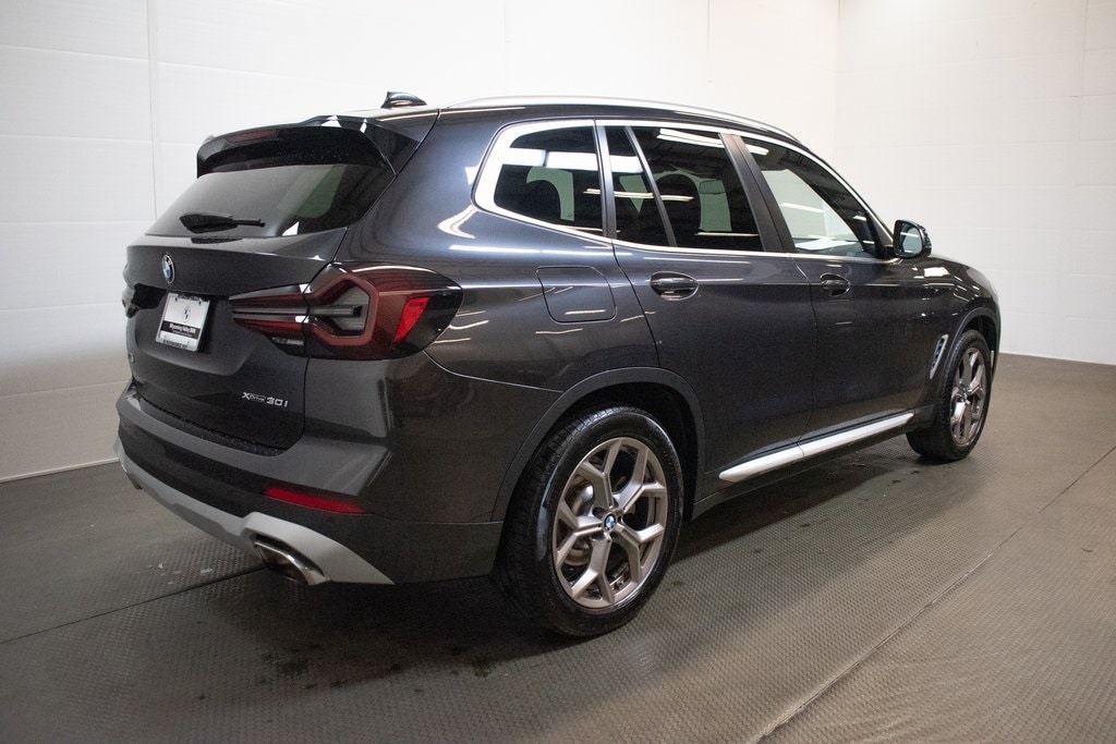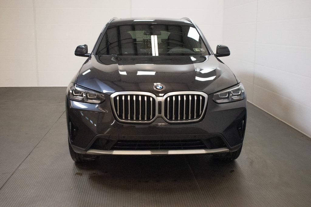 This X3 is well equipped with Connected Package Pro, Premium Package w/ZPA (Head-Up Display, Heated Front Seats, Heated Steering Wheel, Live Cockpit Pro w/Navigation, Lumbar Support, and Panoramic Moonroof (ZPA)), Navigation, Navigation System, 12 Speakers, 3.385 Axle Ratio, 4-Wheel Disc Brakes, ABS brakes, Air Conditioning, Alloy wheels, AM/FM Radio, AM/FM radio: SiriusXM, Apple CarPlay & Android Auto Compatibility, Auto High-beam Headlights, Auto-dimming door mirrors, Auto-dimming Rear-View mirror, Automatic temperature control, BMW Assist eCall, BMW TeleServices, Brake assist, Bumpers: body-color, Comfort Access Keyless Entry, ConnectedDrive Services, Delay-off headlights, Driver door bin, Driver vanity mirror, Dual front impact airbags, Dual front side impact airbags, Electronic Stability Control, Emergency communication system: BMW Assist eCall, Enhanced USB & Bluetooth w/Smartphone Integration, Exterior Parking Camera Rear, Four wheel independent suspension, Front anti-roll bar, Front Bucket Seats, Front Center Armrest, Front dual zone A/C, Front reading lights, Fully automatic headlights, Garage door transmitter, Genuine wood dashboard insert, Genuine wood door panel insert, Heated door mirrors, Hi-Fi Sound System, Illuminated entry, Knee airbag, Leather steering wheel, Low tire pressure warning, Memory seat, Occupant sensing airbag, Outside temperature display, Overhead airbag, Panic alarm, Passenger door bin, Passenger vanity mirror, Perforated SensaTec Upholstery, Power door mirrors, Power driver seat, Power Front Seats, Power Liftgate, Power passenger seat, Power steering, Power windows, Radio data system, Rain sensing wipers, Rear air conditioning, Rear anti-roll bar, Rear reading lights, Rear seat center armrest, Rear window defroster, Rear window wiper, Remote Engine Start, Remote keyless entry, Security system, SiriusXM w/360L & 1 Yr Platinum Plan Subscription, Speed control, Speed-sensing steering, Speed-Sensitive Wipers, Split folding rear seat, Spoiler, Sport Seats, Sport steering wheel, Steering wheel mounted audio controls, Tachometer, Telescoping steering wheel, Tilt steering wheel, Traction control, Trip computer, Turn signal indicator mirrors, Variably intermittent wipers, Wheels: 19" x 7.5" Y-Spoke (Style 693), WiFi Hotspot, and Wireless Charging.