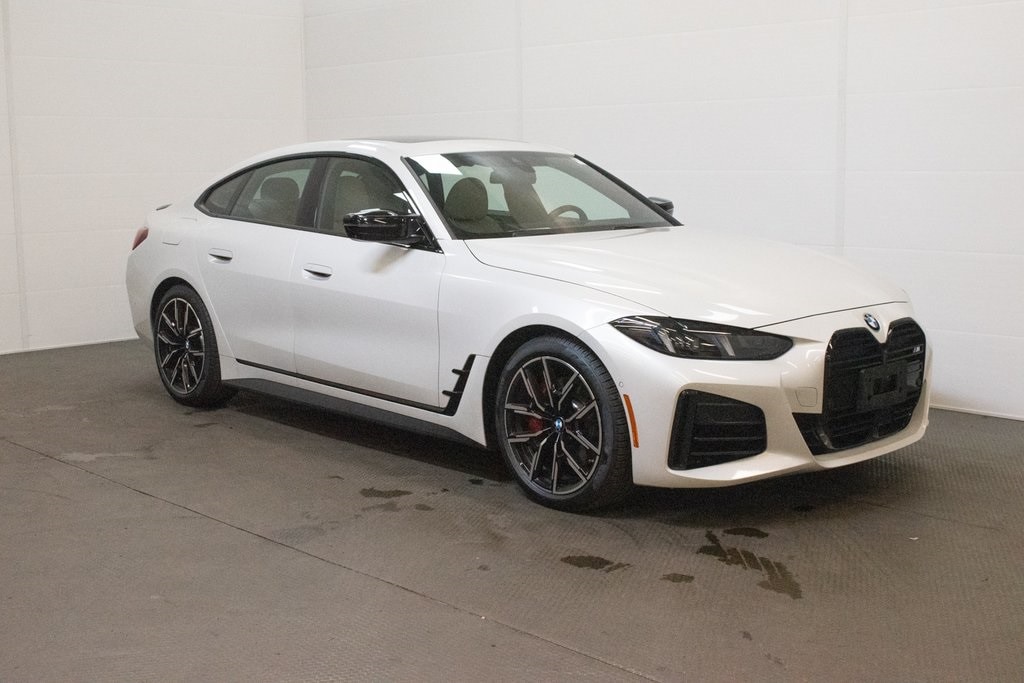 This 4 Series is well equipped with Connected Package Pro, Driving Assistance Package, M Sport Package Pro, Parking Assistance Package (Active Park Distance Control, Parking Assistant Plus, and Surround View w/3D View), Premium Package (BMW Curved Display w/HUD, harman/kardon Surround Sound System, and Heated Steering Wheel), Shadowline Package (M Shadowline Lights), Navigation, Navigation System, 10 Speakers, 4-Wheel Disc Brakes, 48V Mild Hybrid System, ABS brakes, Air Conditioning, Alloy wheels, AM/FM radio: SiriusXM, Apple CarPlay & Android Auto Compatibility, Audio memory, Auto High-beam Headlights, Auto-dimming door mirrors, Auto-dimming Rear-View mirror, Automatic temperature control, BMW Assist eCall, BMW TeleServices, Brake assist, Bumpers: body-color, Compass, ConnectedDrive Services, Delay-off headlights, Driver door bin, Driver vanity mirror, Dual front impact airbags, Dual front side impact airbags, Electronic Stability Control, Emergency communication system: BMW Assist eCall, Exterior Parking Camera Rear, Four wheel independent suspension, Front anti-roll bar, Front Bucket Seats, Front Center Armrest, Front dual zone A/C, Front reading lights, Fully automatic headlights, Garage door transmitter, Heated door mirrors, Heated Front Seats, Heated front seats, Hi-Fi Sound System, HVAC memory, Illuminated entry, Knee airbag, Leather steering wheel, Low tire pressure warning, Lumbar Support, Memory seat, Occupant sensing airbag, Outside temperature display, Overhead airbag, Overhead console, Panic alarm, Passenger door bin, Passenger vanity mirror, Perforated Sensatec Upholstery, Personal eSIM 5G, Power door mirrors, Power driver seat, Power Front Seats, Power Liftgate, Power moonroof, Power passenger seat, Power steering, Power windows, Radio data system, Radio: AM/FM Audio System, Rain sensing wipers, Rear anti-roll bar, Rear reading lights, Rear seat center armrest, Rear window defroster, Remote Engine Start, Remote keyless entry, Security system, SiriusXM Satellite Radio w/1 Year Subscription, Speed control, Speed-sensing steering, Speed-Sensitive Wipers, Split folding rear seat, Spoiler, Sport Seats, Sport steering wheel, Steering wheel mounted audio controls, Tachometer, Telescoping steering wheel, Tilt steering wheel, Traction control, Trip computer, Turn signal indicator mirrors, Variably intermittent wipers, Wheels: 19" x 8.5" Fr & 19" x 9.0" Rr M Y-Spoke, Widescreen Display, and Wireless Device Charging.