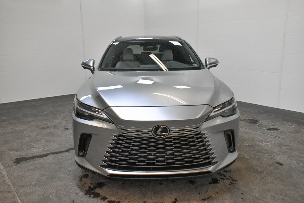 This RX is well equipped with ABS brakes, Alloy wheels, Compass, Electronic Stability Control, Front dual zone A/C, Heated door mirrors, Heated Front Bucket Seats, Heated front seats, Illuminated entry, Low tire pressure warning, Power Liftgate, Remote keyless entry, Traction control, 12 Speakers, 4-Wheel Disc Brakes, Air Conditioning, AM/FM radio: SiriusXM, Anti-whiplash front head restraints, Auto High-beam Headlights, Auto-dimming door mirrors, Auto-dimming Rear-View mirror, Automatic temperature control, Brake assist, Bumpers: body-color, Delay-off headlights, Driver door bin, Driver vanity mirror, Dual front impact airbags, Dual front side impact airbags, Emergency communication system: Safety Connect (10-year trial), Exterior Parking Camera Rear, Four wheel independent suspension, Front anti-roll bar, Front Bucket Seats, Front Center Armrest, Front fog lights, Front reading lights, Fully automatic headlights, Garage door transmitter: HomeLink, Leather Shift Knob, Leather steering wheel, NuLuxe Seat Trim, Occupant sensing airbag, Outside temperature display, Overhead airbag, Overhead console, Panic alarm, Passenger door bin, Passenger vanity mirror, Power door mirrors, Power driver seat, Power passenger seat, Power steering, Power windows, Radio data system, Radio: Lexus Interface w/9.8" Touchscreen Display, Rain sensing wipers, Rear air conditioning, Rear anti-roll bar, Rear reading lights, Rear seat center armrest, Rear side impact airbag, Rear window defroster, Rear window wiper, Security system, Speed control, Speed-sensing steering, Split folding rear seat, Spoiler, Steering wheel mounted audio controls, Telescoping steering wheel, Tilt steering wheel, Trip computer, Turn signal indicator mirrors, Variably intermittent wipers, and Wireless Apple CarPlay/Wireless Android Auto.