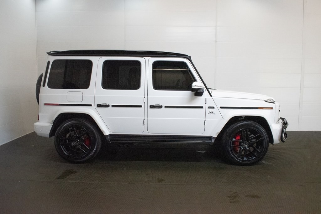 This G-Class is well equipped with Exclusive Interior Package (G manufaktur Front Passenger Grab Handle Badge), ENERGIZING Comfort Control, Navigation System, Wheels: 21" AMG® Matte Black Twin 5-Spoke Alloy, 15 Speakers, 4-Wheel Disc Brakes, ABS brakes, Adaptive suspension, Air Conditioning, Alloy wheels, AM/FM radio: SiriusXM, Android Auto®, Apple CarPlay®, Apple CarPlay®/Android Auto®, Auto High-beam Headlights, Auto tilt-away steering wheel, Auto-dimming door mirrors, Auto-dimming Rear-View mirror, Automatic temperature control, Axle Ratio: TBD, Bodyside moldings, Brake assist, Bumpers: body-color, Burmester® Surround Sound System, Child-Seat-Sensing Airbag, Compass, Delay-off headlights, Driver door bin, Driver vanity mirror, Dual front impact airbags, Dual front side impact airbags, Electronic Stability Control, Emergency communication system: Mercedes-Benz Emergency Call Service, Exterior Parking Camera Rear, Front anti-roll bar, Front Bucket Seats, Front Center Armrest, Front dual zone A/C, Front reading lights, Front wheel independent suspension, Garage door transmitter: HomeLink, Genuine wood console insert, Genuine wood dashboard insert, Genuine wood door panel insert, Head restraints memory, Headlight cleaning, Heated door mirrors, Heated Front Seats, Heated front seats, Heated rear seats, Illuminated entry, Knee airbag, Low tire pressure warning, Memory seat, Nappa Leather Trim, Occupant sensing airbag, Outside temperature display, Overhead airbag, Overhead console, Panic alarm, Passenger door bin, Passenger vanity mirror, Power adjustable front head restraints, Power door mirrors, Power driver seat, Power moonroof, Power passenger seat, Power steering, Power windows, Radio data system, Radio: COMAND® Online Navigation, Rain sensing wipers, Rear air conditioning, Rear anti-roll bar, Rear fog lights, Rear reading lights, Rear seat center armrest, Rear side impact airbag, Rear window defroster, Rear window wiper, Remote keyless entry, Security system, SiriusXM Radio, Speed control, Speed-sensing steering, Split folding rear seat, Sport steering wheel, Steering wheel memory, Steering wheel mounted audio controls, Tachometer, Telescoping steering wheel, Tilt steering wheel, Traction control, Trip computer, Turn signal indicator mirrors, and Variably intermittent wipers.