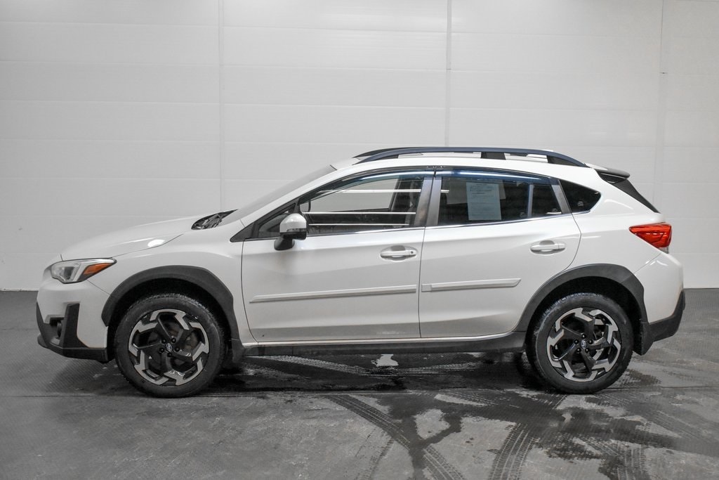 This Crosstrek is well equipped with Moonroof Package 2 (harman/kardon Speaker System, Power Moonroof, Radio: Subaru STARLINK 8.0" Multimedia Nav System, and Subaru STARLINK Smartphone Integration), Popular Package #2 (All-Weather Floor Liners, Auto-Dimming Mirror w/Compass & HomeLink, Rear Bumper Cover, Rear Seatback Protector, and Splash Guards), 3.70 Axle Ratio, 4-Wheel Disc Brakes, 6 Speakers, ABS brakes, Air Conditioning, Alloy wheels, AM/FM radio: SiriusXM, Anti-whiplash front head restraints, Auto High-beam Headlights, Automatic temperature control, Brake assist, Bumpers: body-color, CD player, Crystal White Pearl Body Side Molding, Driver door bin, Driver vanity mirror, Dual front impact airbags, Dual front side impact airbags, Electronic Stability Control, Emergency communication system: STARLINK Safety and Security (Subscription Required), Exterior Parking Camera Rear, Four wheel independent suspension, Front anti-roll bar, Front Bucket Seats, Front Center Armrest, Front fog lights, Front reading lights, Fully automatic headlights, Heated door mirrors, Heated Front Bucket Seats, Heated front seats, Illuminated entry, Knee airbag, Leather-Trimmed Upholstery, Low tire pressure warning, Occupant sensing airbag, Outside temperature display, Overhead airbag, Overhead console, Panic alarm, Passenger door bin, Passenger vanity mirror, Power door mirrors, Power driver seat, Power steering, Power windows, Radio data system, Radio: Subaru STARLINK 8.0" Multimedia Plus System, Rear anti-roll bar, Rear seat center armrest, Rear window defroster, Rear window wiper, Remote keyless entry, Security system, Speed control, Speed-sensing steering, Split folding rear seat, Spoiler, STARLINK/Apple CarPlay/Android Auto, Steering wheel mounted audio controls, Tachometer, Telescoping steering wheel, Tilt steering wheel, Traction control, Trip computer, Turn signal indicator mirrors, Variably intermittent wipers, and Wheels: 18" Alloy Machine Finish.
